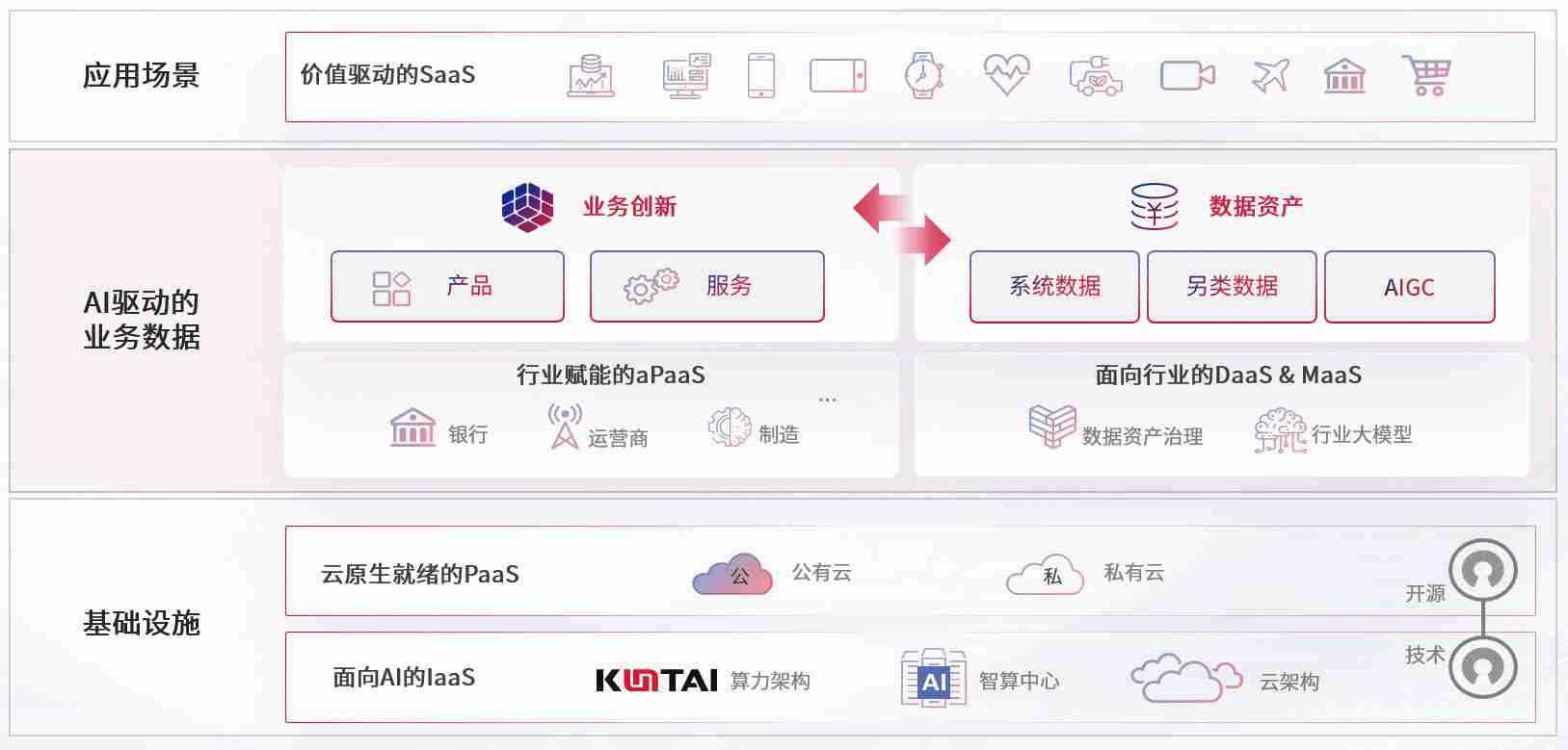 数字时代,,,,围绕企业数字化转型的关键要素,,,,1277星际电子游戏数码开创性的提出数云融合战略和技术体系框架,,着力在云原生、、、、数字原生、、、、AI原生和信创产业上架构产品和服务能力,,,为处在不同数字化转型阶段的快消零售、、汽车、、、金融、、、医疗、、、政企、、、、教育、、、运营商等行业客户提供泛在的敏捷IT能力和融合的数据驱动能力,,,构建跨界融合创新的数字业务场景和新业务模式,,助力企业级客户建立面向未来的核心能力和竞争优势,,,全面推动社会的数字化、、、、智能化转型升级。。